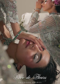 Our icy princess ‘Flavia’ rekindles sparkle this season. Cool soft blues are encrusted with shimmery silver embellishments for a bedazzled look. Like stars in the night sky, crystals twinkle under the light mesmerising each viewer. This gown perfectly captures Shurooq’s mix of traditional handwork with classically modern silhouettes for an ever-so couture finish.