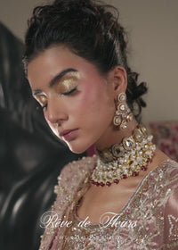 A masterpiece to behold ‘Margo’ is sure to steal hearts this season. Made exclusively on tissue, this tes pink creation is all about traditional ornamentation and the most stunningly intricate handwork on the shirt and gharara. A floral jaal is harmoniously complemented with thick borders to bring back old glamour. Silver and dull gold embellishments give this an entirely new look with a contemporary flair, this is what Shurooq couture is all about - timeless beauty with a new style.