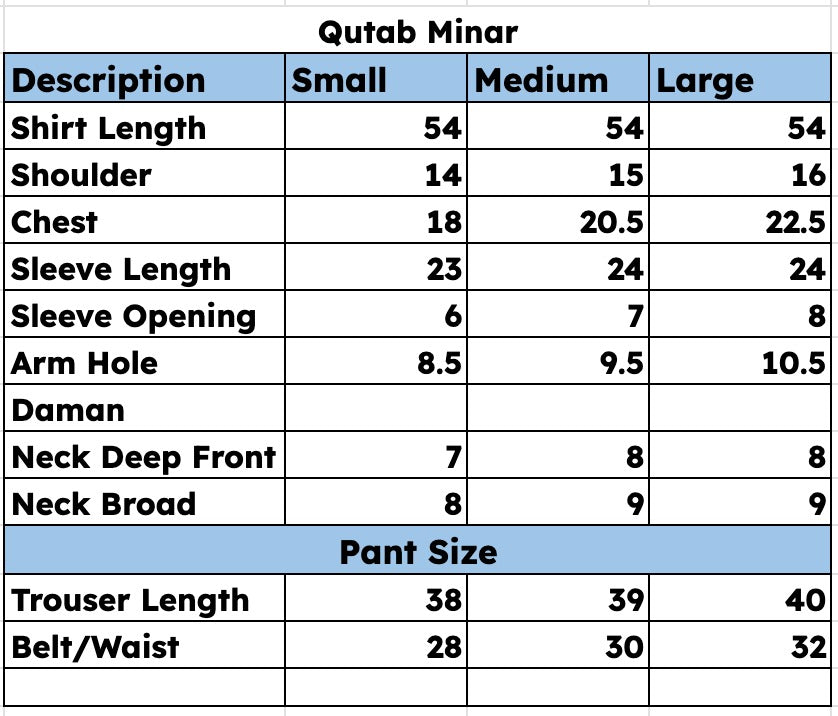 Mystically stunning, Qutub Minar embodies inner beauty with a unique traditional style. Inspired by the classic pishwas; a soft sky blue silk base sets stage to intricate floral embroideries with geometric Mughal patterns all over. Sequins and pearls beautify each element with plain silk trousers. A soft digital printed silk dupatta with a custom Shurooq print echoes stories of the past making Sufi an evergreen beauty
